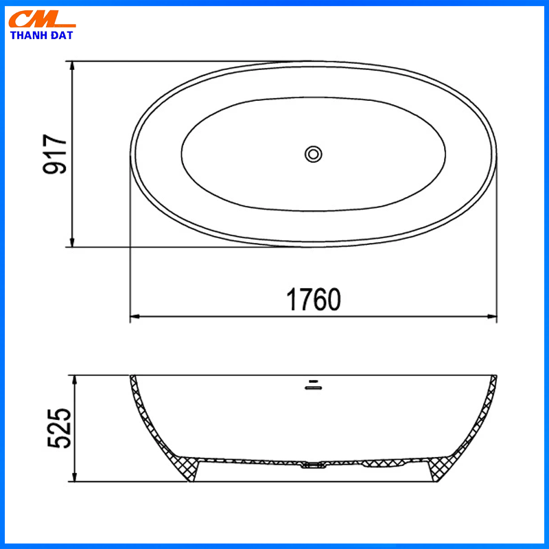 - Kích thước: 1760 x 917 x 525mm (Dài x Rộng x Cao)