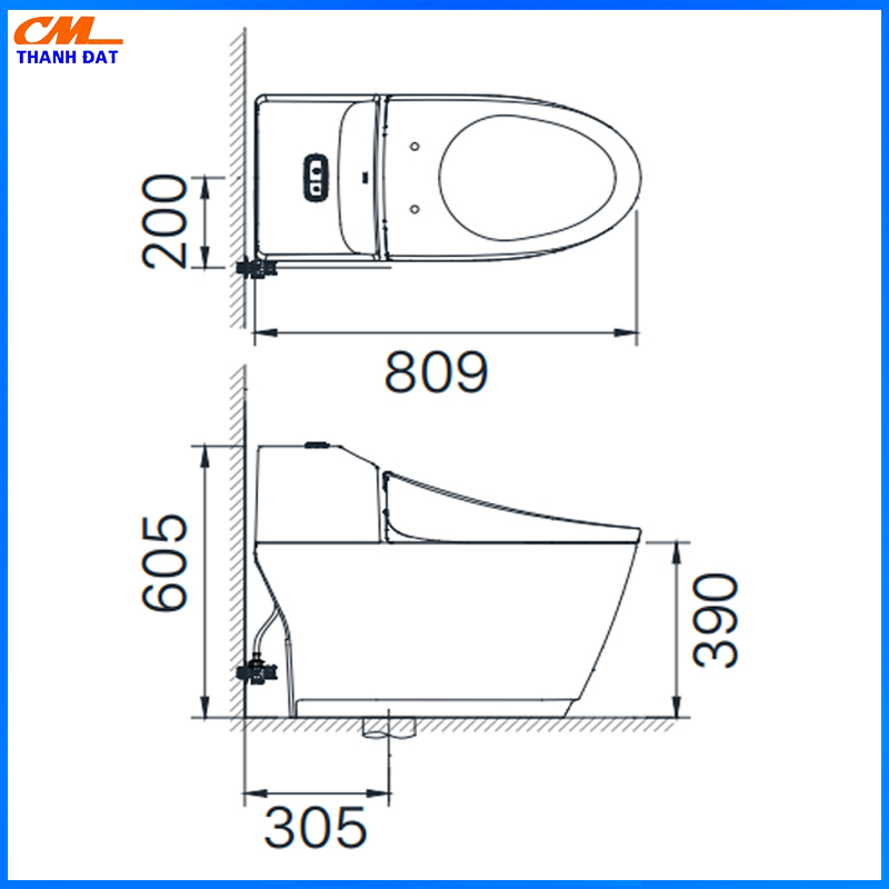 - Tâm thoát : 300mm (+-5)