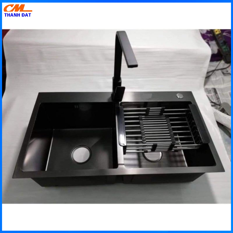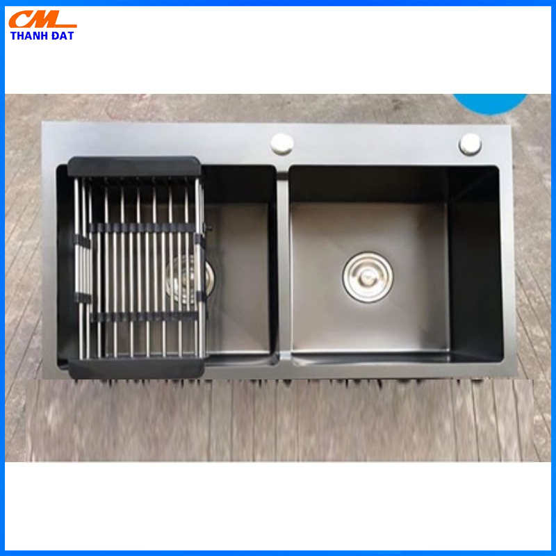 +Mô tả sản phẩm: -kích thước chậu:dài x rộng x sâu:82x45x23cm -Kích thước khoét đá:79×42 cm -Công nghệ sơn tĩnh điện 7 lớp cao cấp,(lớp sơn bám chặt vào chậu,khác hẳn với các loại chậu phủ thông thường)chống trầy xước,bong tróc,không bị ố theo thời gian,chống bám bẩn,dễ dàng vệ sinh. -Chậu có thiết kế 2 hộc cân bằng nhau,kích thước mỗi ngăn là:36x38cm -Đáy chậu kiểu vuông giúp tăng diện tích lòng chứa,chứa được nhiều đồ hơn. -Đáy chậu thiết kế đổ dốc,giúp chậu thoát nước hoàn toàn và nhanh hơn,không đọng nước trong bồn chậu. -Độ sâu lòng chậu là 23cm,giúp không bị văng nước ra ngoài khi rửa ráy. -Chậu thiết kế lỗ thoát tràn,không lo tràn nước ra ngoài khi sơ ý không khóa vòi nước. -Bên ngoài thành chậu được sơn 1 lớp chống bám bẩn và ẩm mốc,ngoài ra xung quanh lòng chậu được dán tấm ốp chống ồn,giúp chậu không gây ra tiếng ồn khi xả nước. -Bộ xả đi kèm là bộ xả thiết kế chống hôi tuyệt đối.ống xả lớn,hạn chế cặn bẩn và dị vật mắc kẹt trong lòng ống gây tắc đường nước xả. -Bộ xả đi kèm 2 bầu xi phông thoát nước lớn,đường kính 140mm,giúp thoát nước nhanh hơn,lọc rác bên trong được làm từ inox 304,bền bỉ,dễ dàng vệ sinh, -Chậu thiết kế 2 lỗ trên thành chậu:1 lỗ để gắn vòi rửa chén,1 lỗ để gắn bình xà bông(BXB) hoặc vòi máy lọc nước.