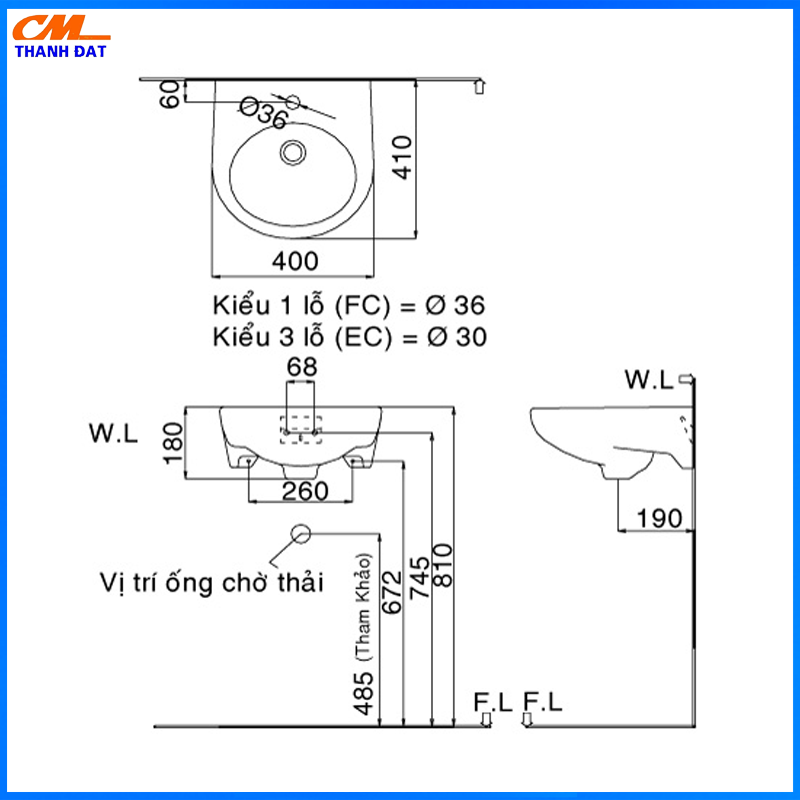 Chậu rửa Inax treo tường L-282V - Công Ty Cổ Phần Thương Mại và Dịch Vụ CM Thành Đạt