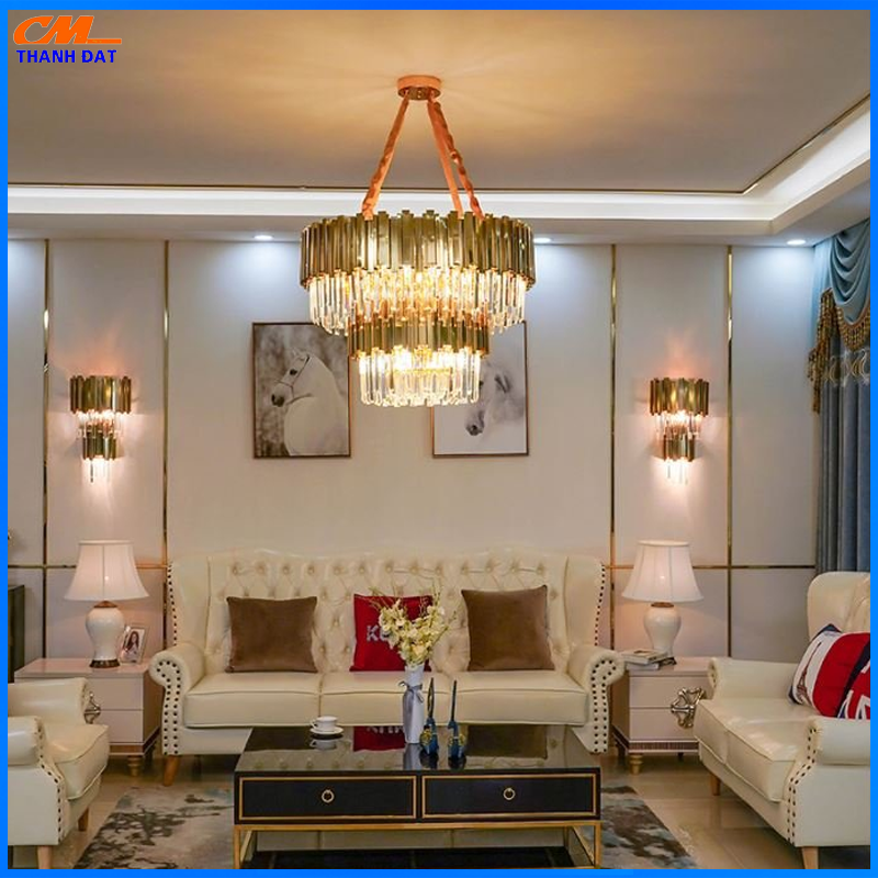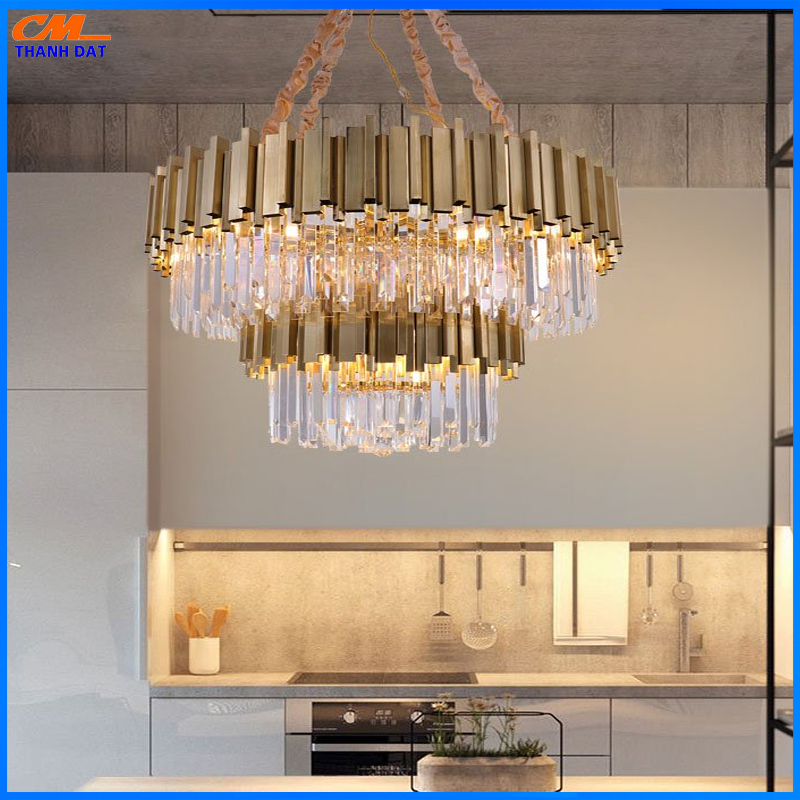 Pha lê là biểu tượng của sự tốt lành, may mắn. Vậy nên mọi người thường lắp đèn pha lê ở phòng khách, phòng ăn. Đây là nơi cả gia đình sum họp quây quần bên nhau sau cả ngày mệt mỏi với công việc, học tập.