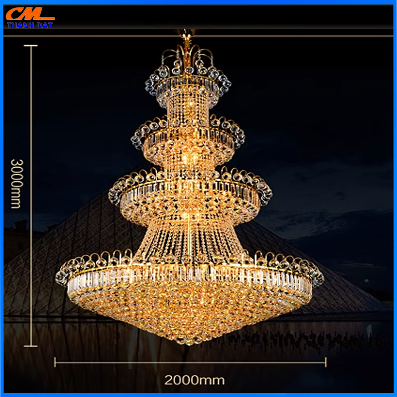 – Thiết kế đèn chùm pha lê thông tầng tạo vẻ đẹp tinh tế phù hợp với nhiều không gian cao cấp như phòng khách, khách sạn, triển lãm, phòng trưng bày, showroom..