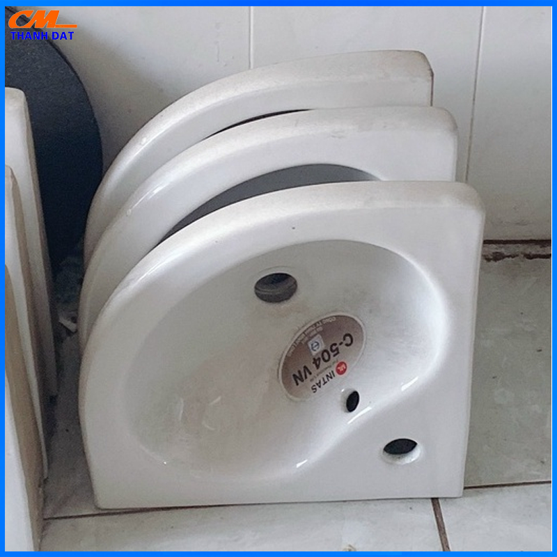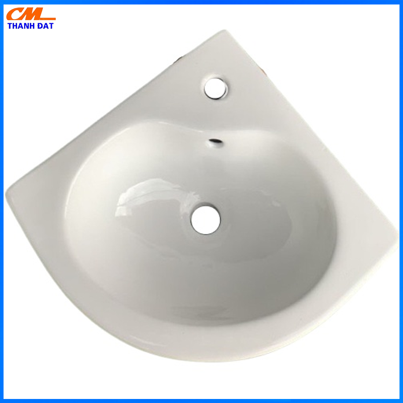 Lavabo góc treo tường Chất liệu: Men sứ, với lớp men dày, bóng, đều màu chống bám bẩn, không bị vàng ố sau thời gian dài sử dụng