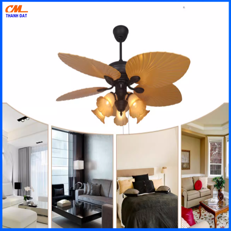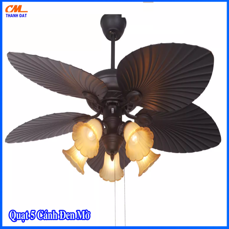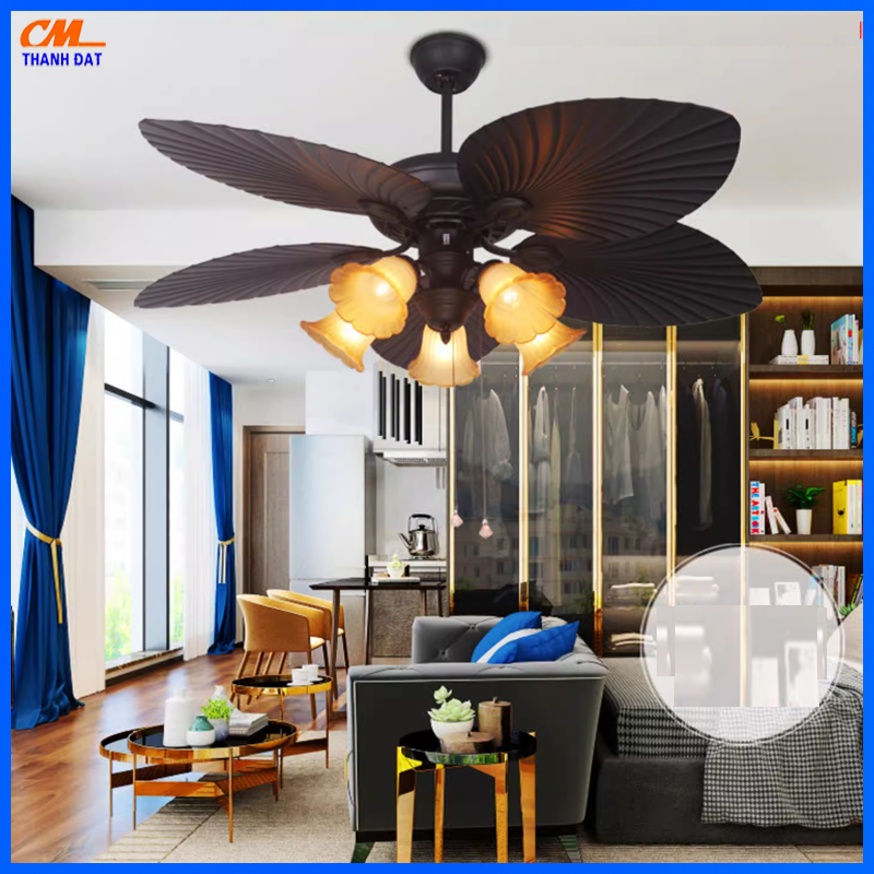 Mô tả Sản phẩm quạt trần đèn 5 cánh lá cổ điển.