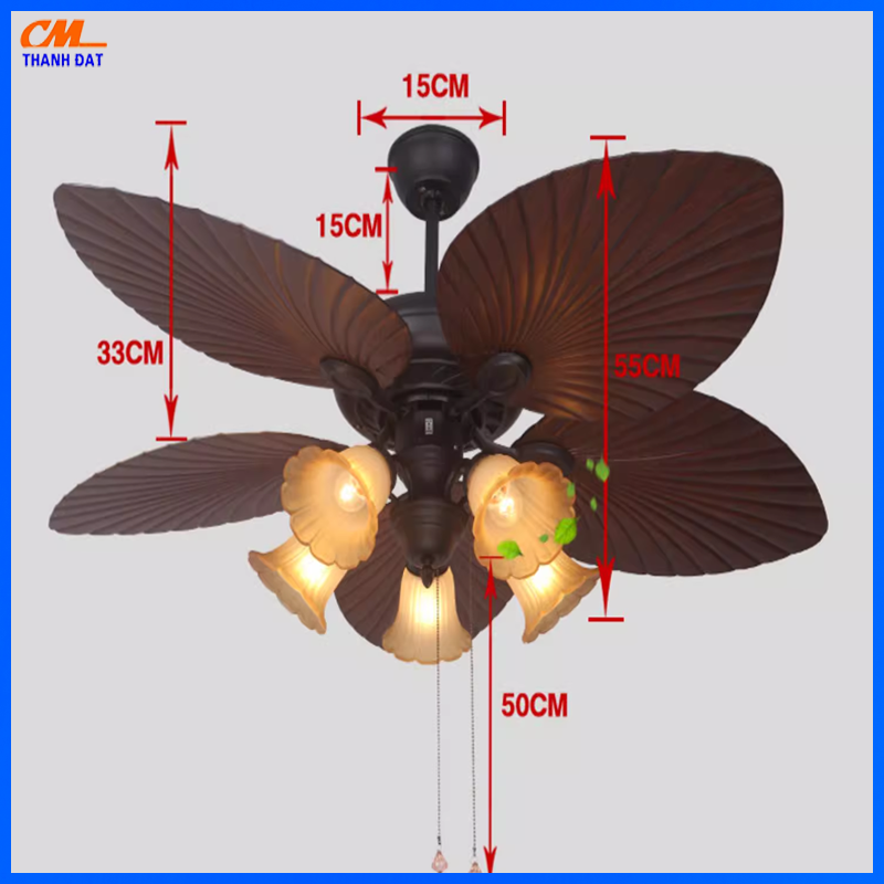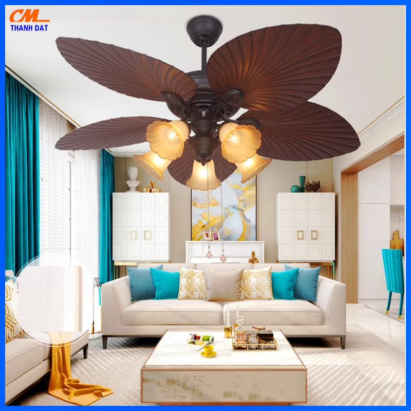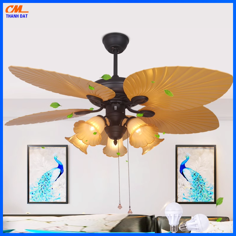 Hình Ảnh Sản Phẩm Quạt Đèn Trần 5 Cánh Lá Cổ Điển