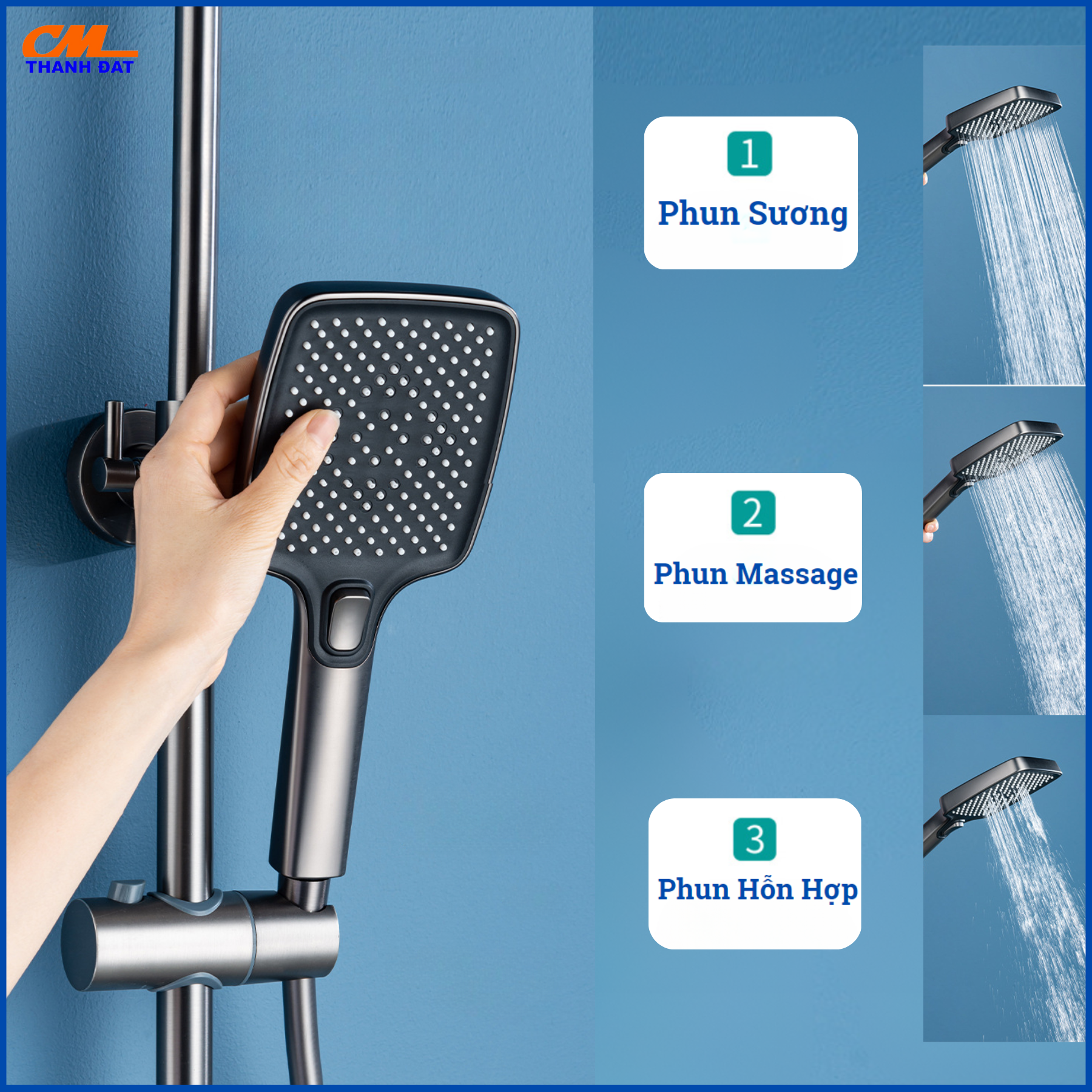 - Củ sen được làm bằng đồng thau 59A mạ PVD chống hoen gỉ, ăn mòn, trầy xước và phai màu, đảm bảo độ bền và đẹp lâu dài. Tay sen và bát sen được làm từ nhựa ABS cao cấp, với 3 chế độ phun nước chỉ cần 1 nút bấm (chế độ phun hỗn hợp, chế độ phun mưa nhỏ và chế độ phun massage), đem lại sự linh hoạt và tiện ích cho việc sử dụng.