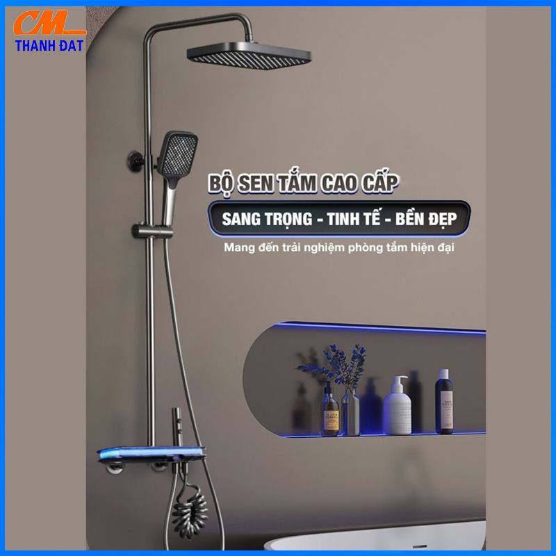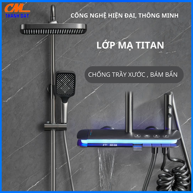 Sen Cây Phím Đàn HS108 Củ Đồng 59A Hiển Thị Nhiệt Độ Mạ Titan 5 Lớp, Đèn Led Bao Quanh Viền, Vòi Sen Tắm Đứng Bảo Hành Chính Hãng 3 Năm
