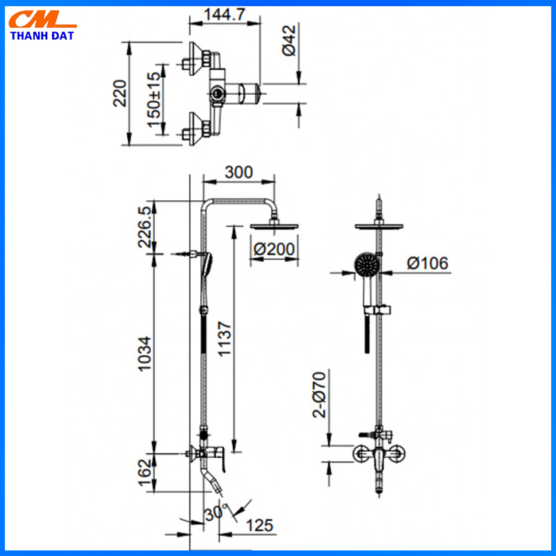 Thông tin nổi bật của sản phẩm– Thiết kế sen cây tắm gồm củ sen, cần sen và bát sen phụ, được làm từ chất liệu đồng.
